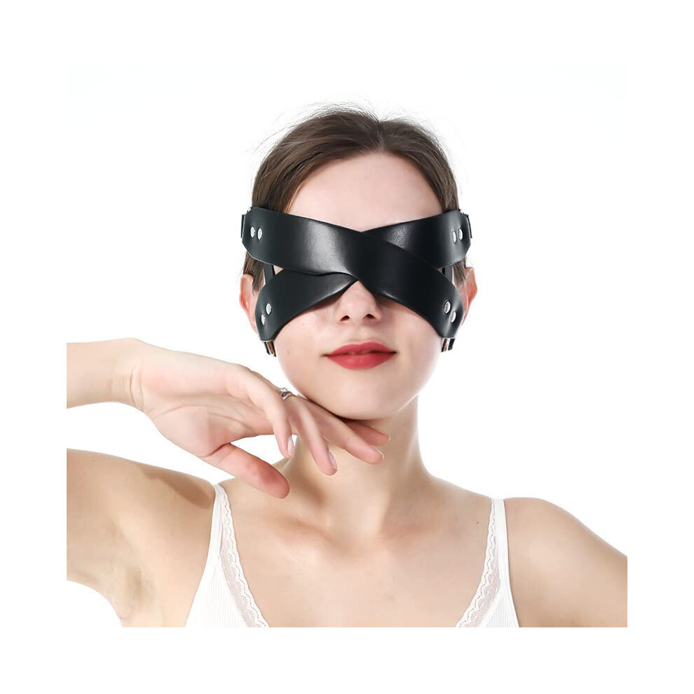 Faux Leather Eye Mask with Studs for Couples, Black BDSM Blindfold, Adjustable Size, Sexy Restraints Sex Toy