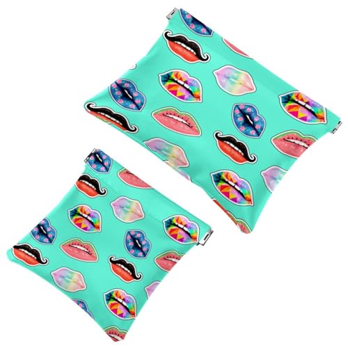 2 PCS Watercolor Colorful Sexy Lips Pattern Pocket Cosmetic Bag, Self-Closing Shrapnel Makeup Pouch, Portable No Zipper Mini Travel Make Up Bag for Coin Lipstick Cosmetics Earphones Jewelry Organizer