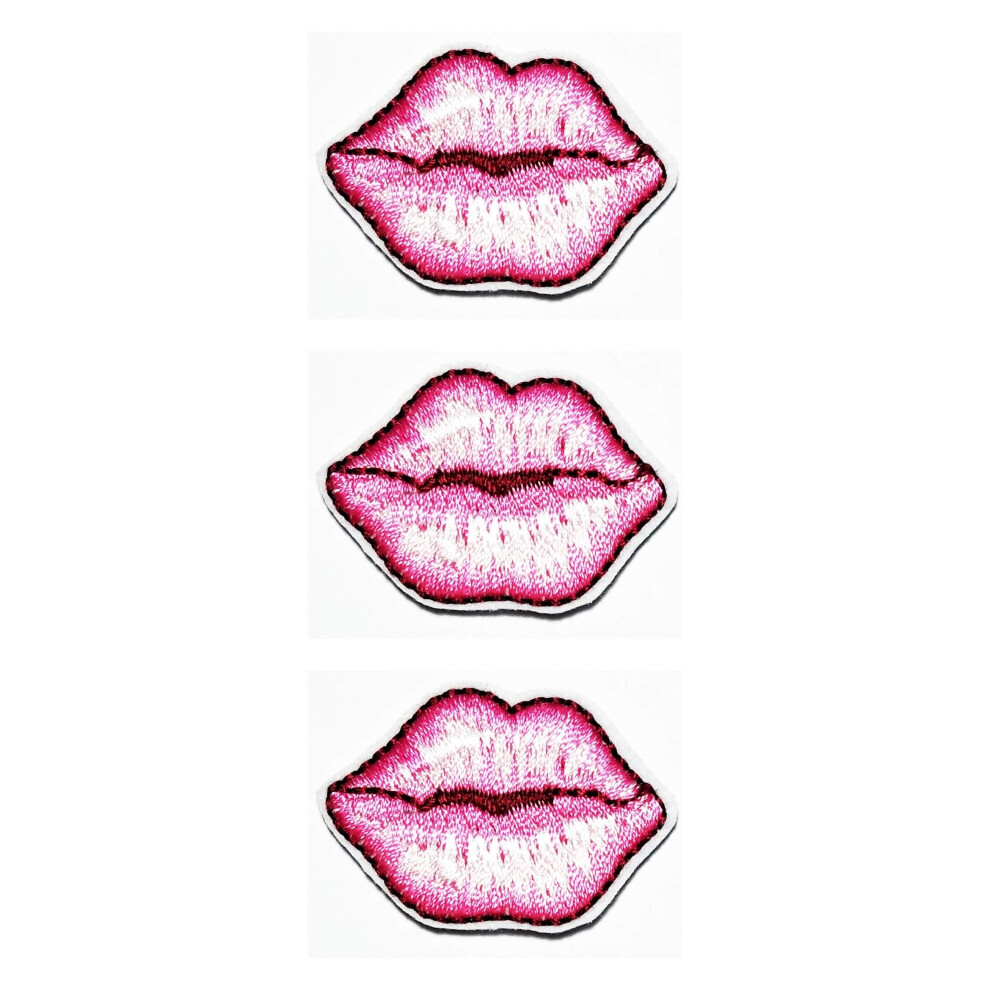 Set 3 Pcs Mini Small Pink Sexy Kiss Lips Lipstick Cosmetic Cartoon Patch Iron On Sewing Embroidered Patches Badge Applique DIY Craft Repair Clothes Ja