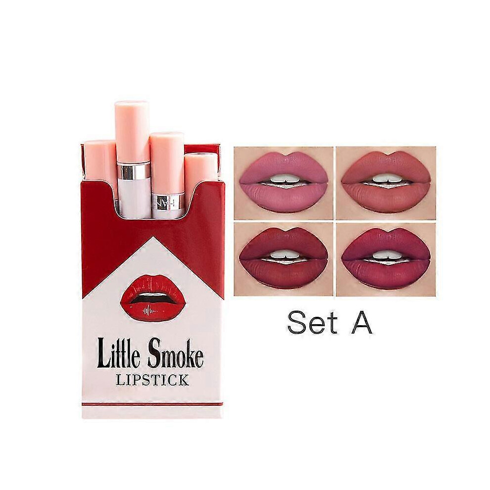 (A) 4pcs/set Creative Cigarette Lipstick Velvet Matte Lasting Waterproof Lipstick Sexy Matte Non-stick Cup Lip Makeup