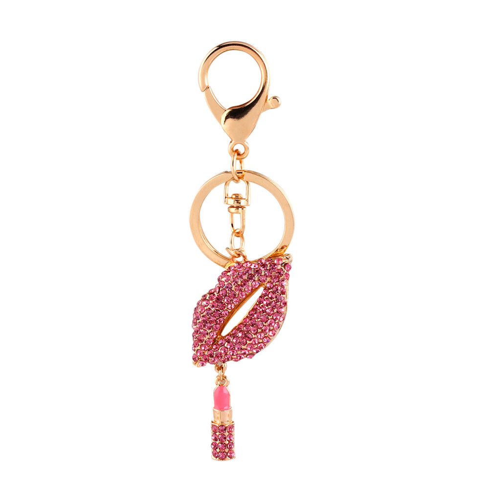 Sexy Lipstick Key Chain Rhinestone Crystal Charm