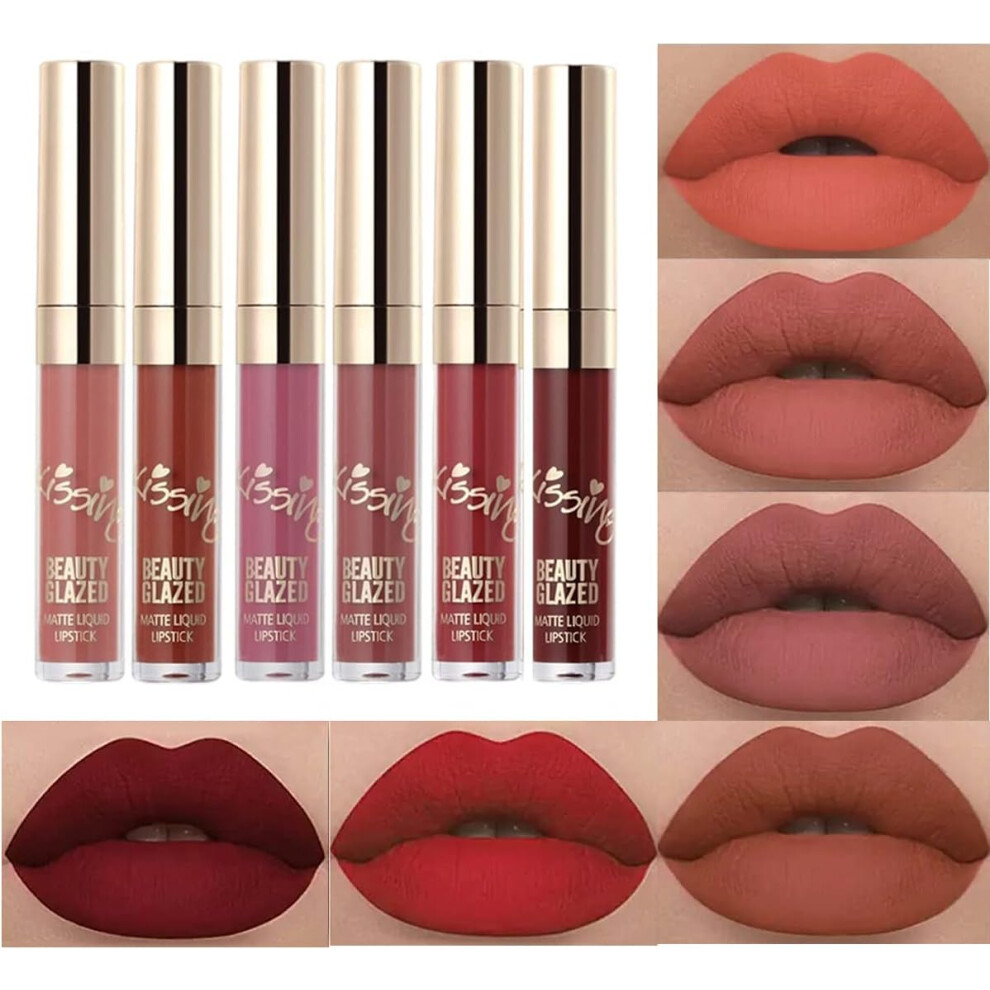 6Pcs Matte Lip Gloss Sexy Liquid Lipstick Waterproof Long Lasting Moisturizer Professional Lips Balm Makeup