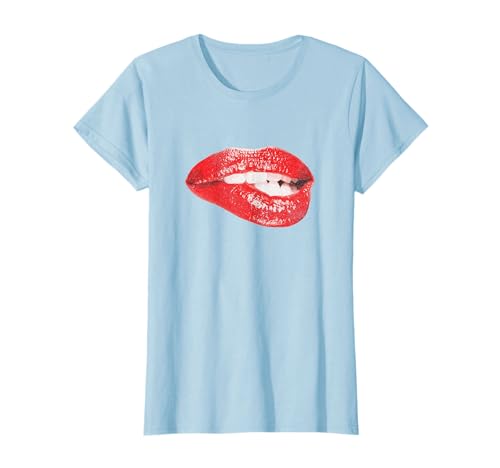 BITING LIPS - cute sexy flirty red lipstick retro distressed T-Shirt