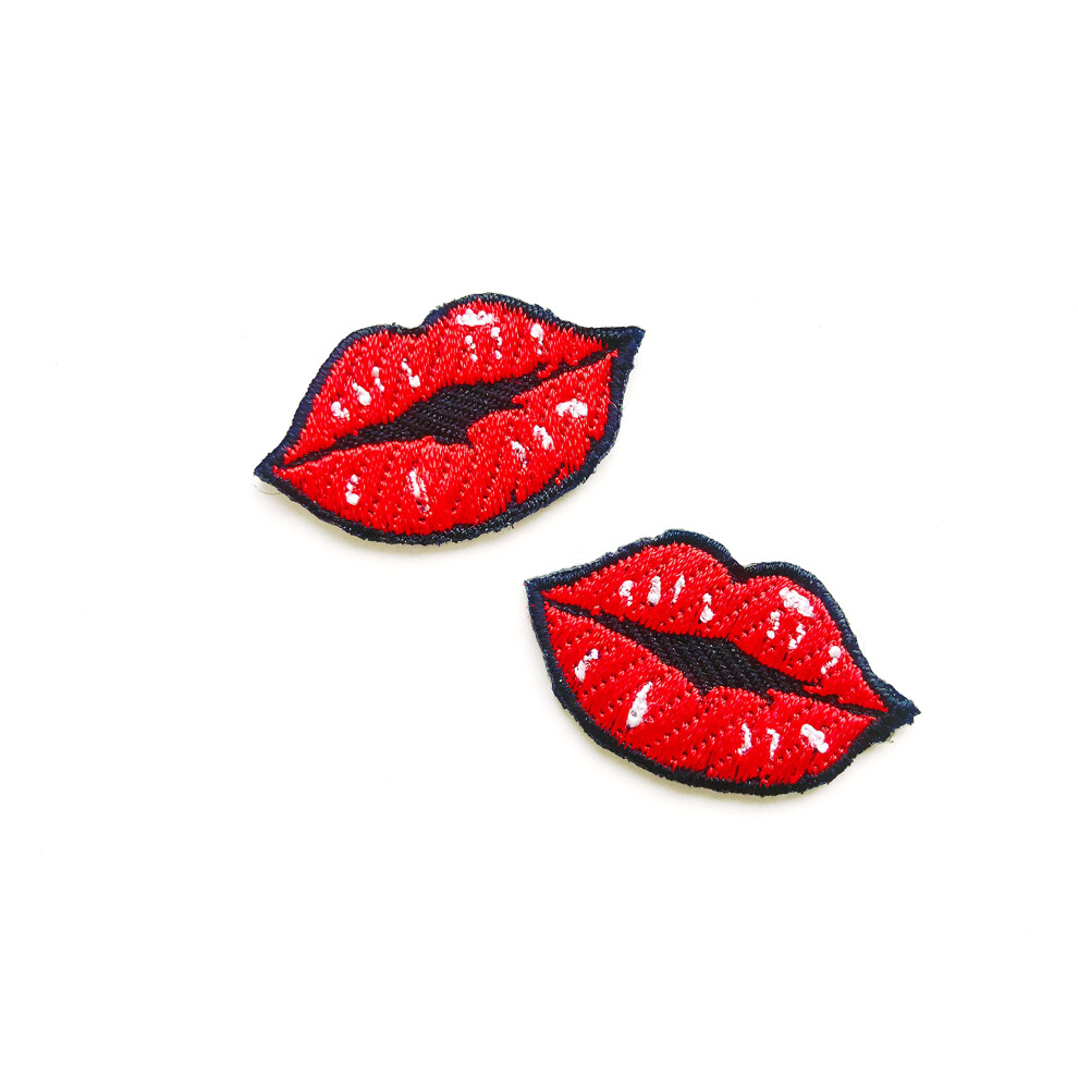TH Set of 2 Tiny. Mini Pretty Red Lips Lipstick Sexy Girls Lady Kiss Cute Cartoon Patches Sew Iron on Embroidered Applique Badge Sign Patch Clothing