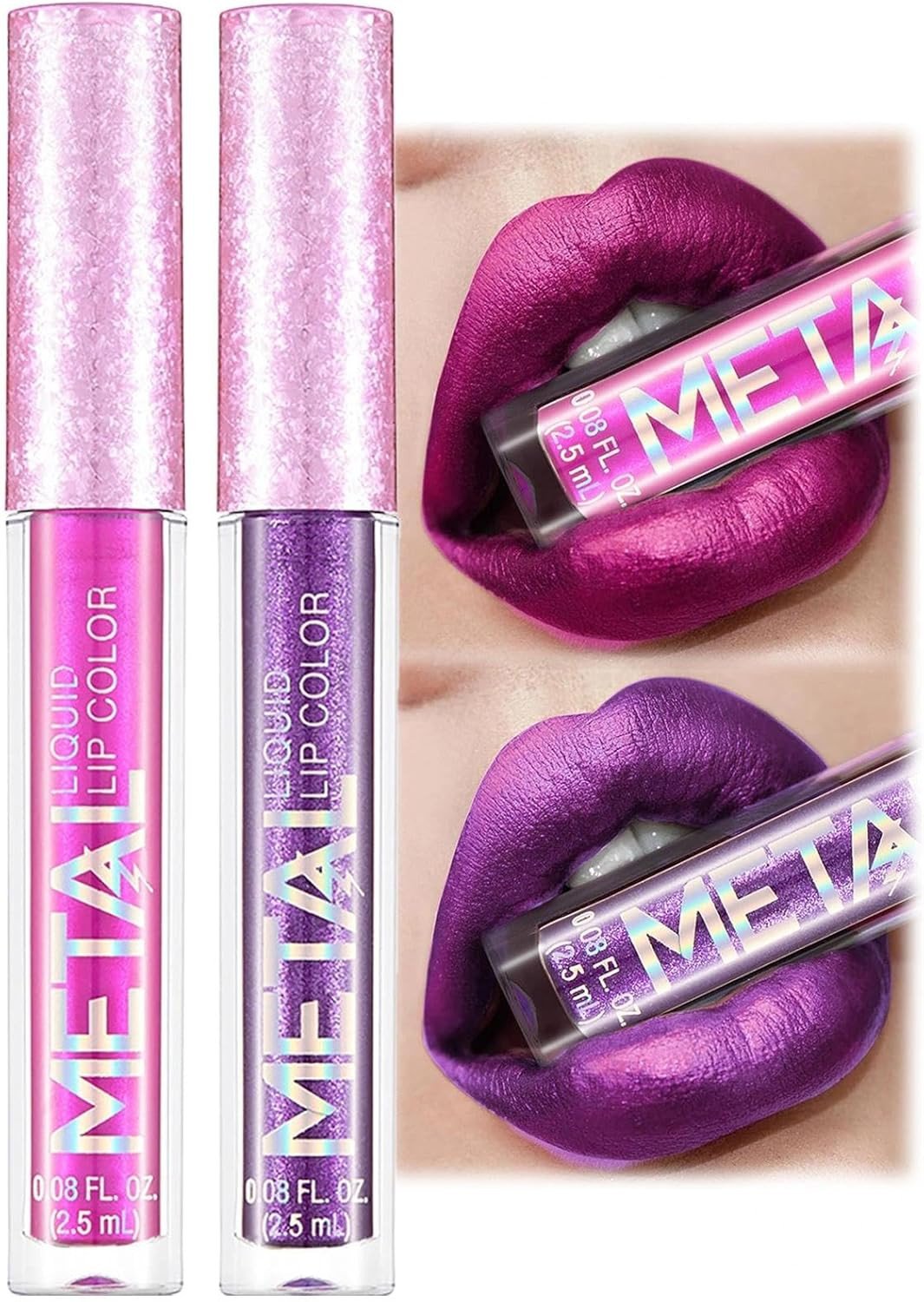 "Metallic Light Lipstick Set - Sexy Purple & Seductive Pink, Long Lasting & Wate