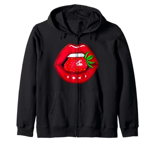 Sexy Strawberry Lips Red Lipstick Woman's Lip Strawberries Zip Hoodie