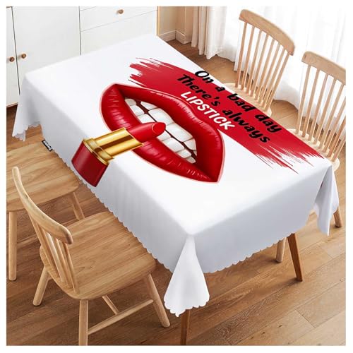 Swono Decorative Rectangle Table Cloth Sexy Lips, Lip Rouge On A Bad Day There Lipstick Polyester Tablecloth Kitchen Table Cover for Dining BBQ Picnic Coffee Table 50x72, 4-6 Seats