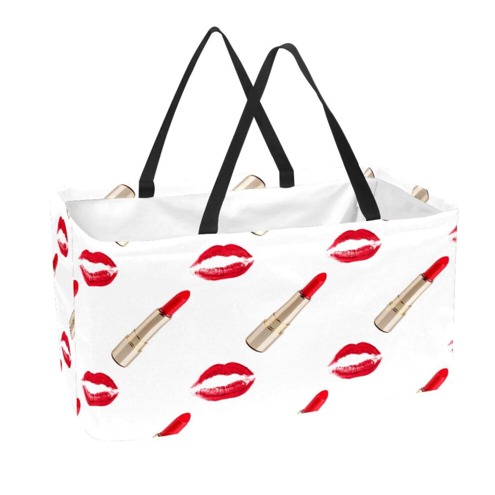 Reusable Shopping Basket Sexy Golden Lipstick Makeup Portable Folding Picnic Grocery Bags Laundry Basket Shopping Tote Bag