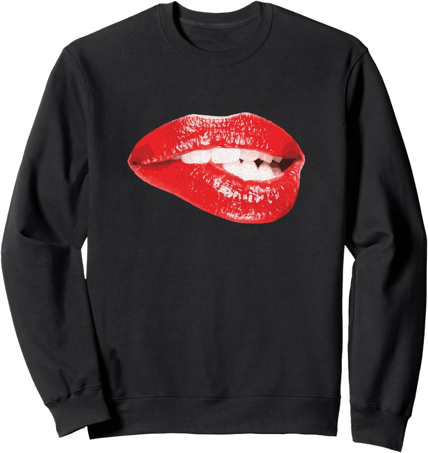 BITING LIPS - cute sexy flirty red lipstick retro distressed Sweatshirt