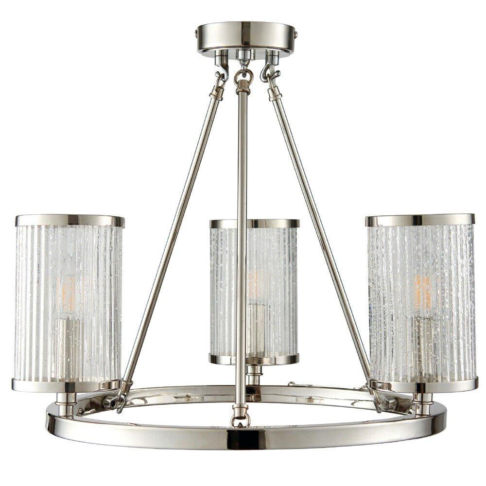 3 Light Chandelier Pendant Nickel Ribbed Glass Shade Hanging Ceiling Lamp Holder