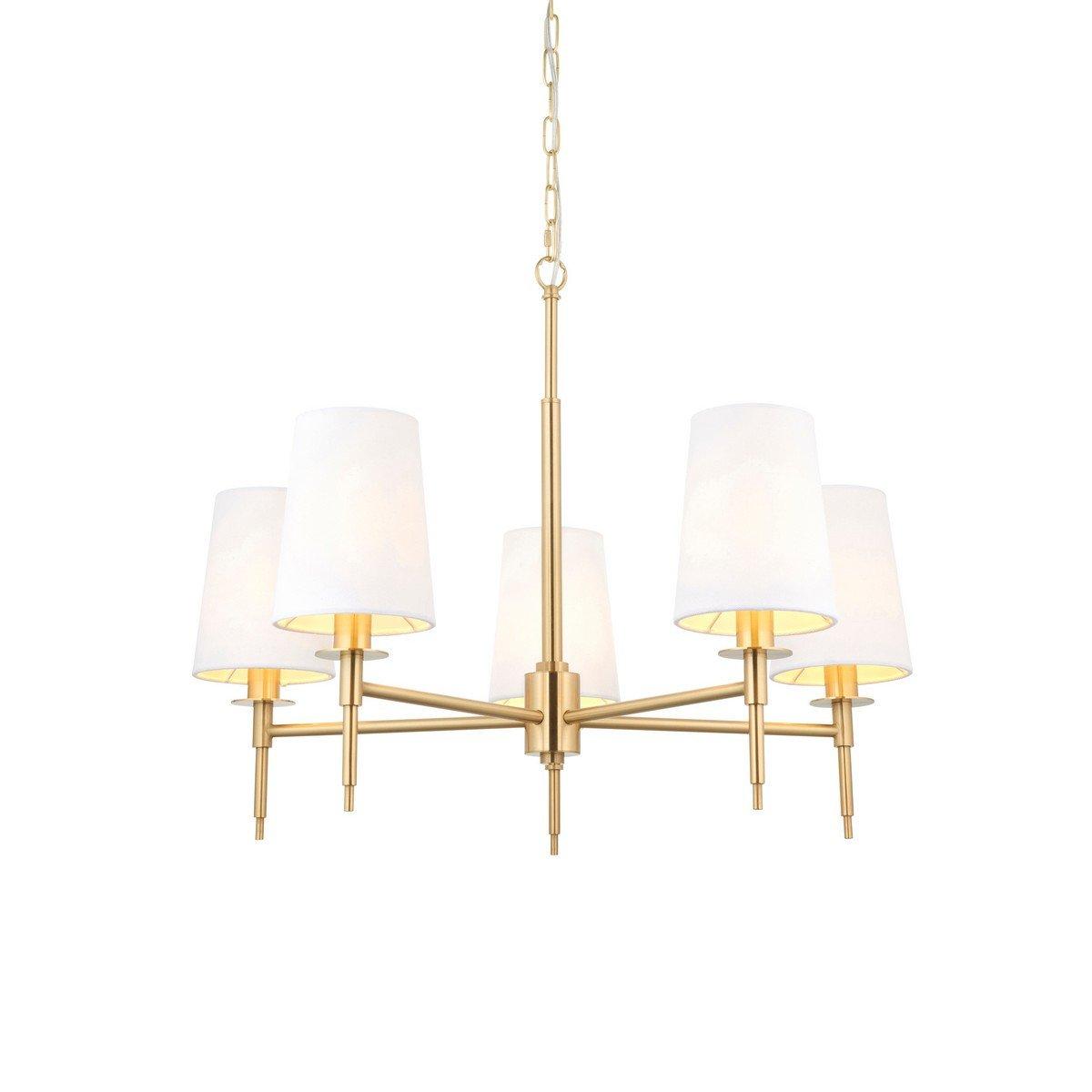 Florence Multi Arm Shade Pendant Ceiling Lamp Satin Brass Plate Vintage White Fabric