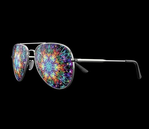 GogoRavers™ Ultimate Metal Diffraction Pilot Shades – Aviator Frame Prism Optics for Raves, EDM Parties, Psytrance Festivals, Laser Light Shows, Kaleidoscope Vision & Psychedelic Nightlife Fashion