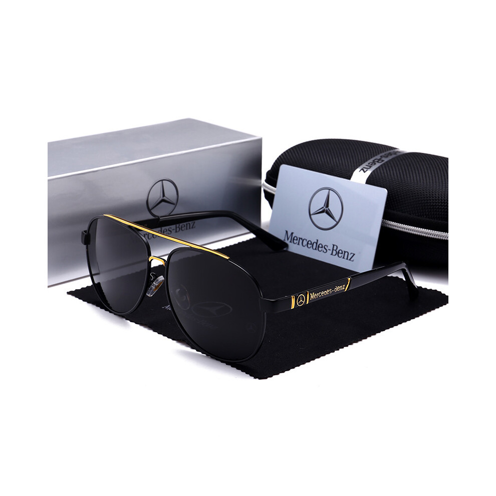 (Black gold framed grey sheet ) Car Logo Sunglasses 751 Men's Driving Polarized Aviator Retro Full Frame UV400 Shades-The first picture prevails