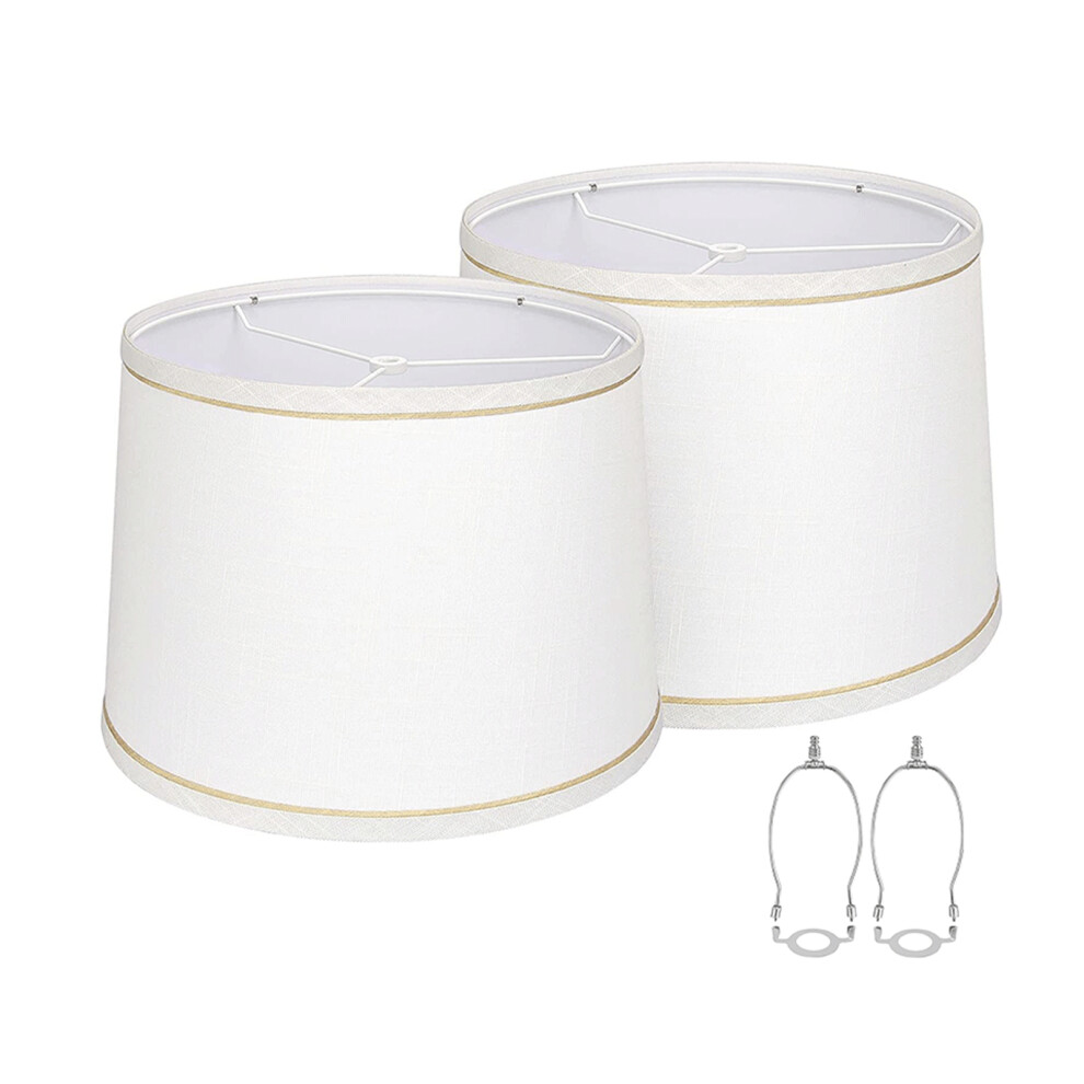 2Set Drum Lamp Shades for Table Lamps, 13"x13"x10" Linen Lampshade, White 3
