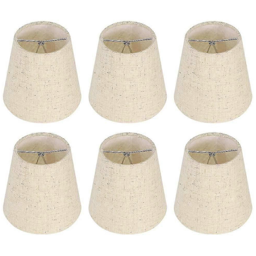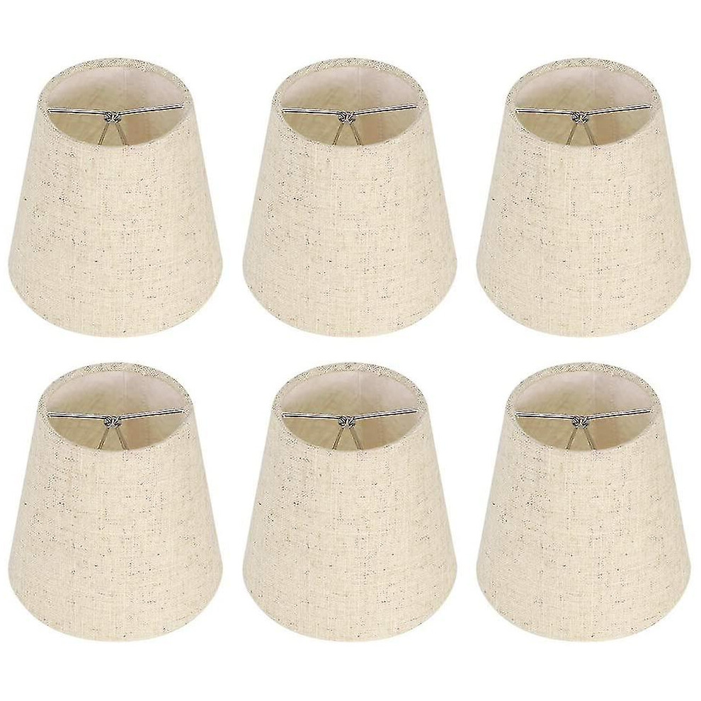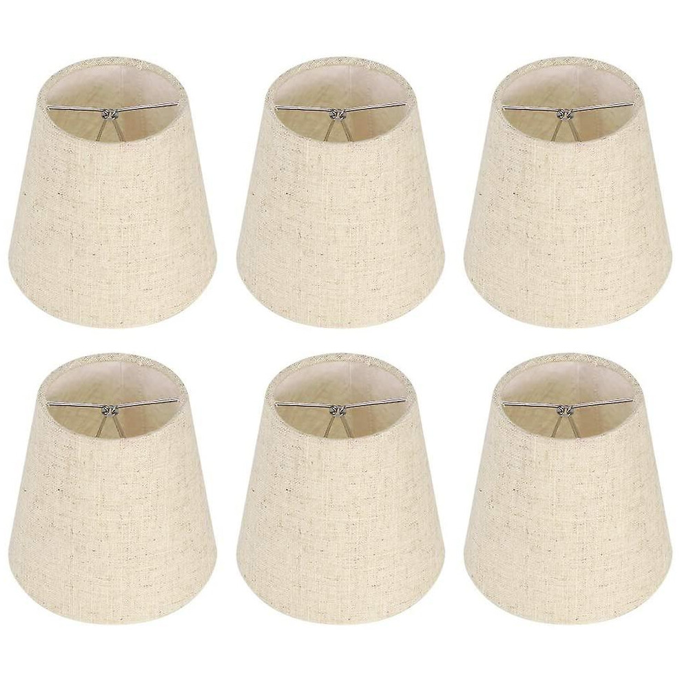 (As show, One size) 6pcs Lamp Shades Wall Lamp Chandelier Clip On Lampshade E14 Screw Linen Small Lamp Shades For Table Lamps