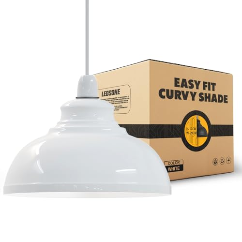 Retro Light Shade Ceiling, Curvy Metal Textured Lampshades for Ceiling Lights,Industrial Easy Fit Pendant Lamp Shades for Table Lamps,Living Room, Bedroom,Hallway, Home Décor (White 1)