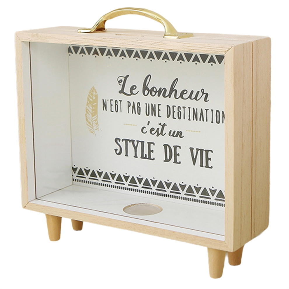 Money Bank Adventure Archive Box, Travel Shadow Box, Ticket Shadow Box with Slot, 8Inch Memory Boxes for Keepsakes Wood Color