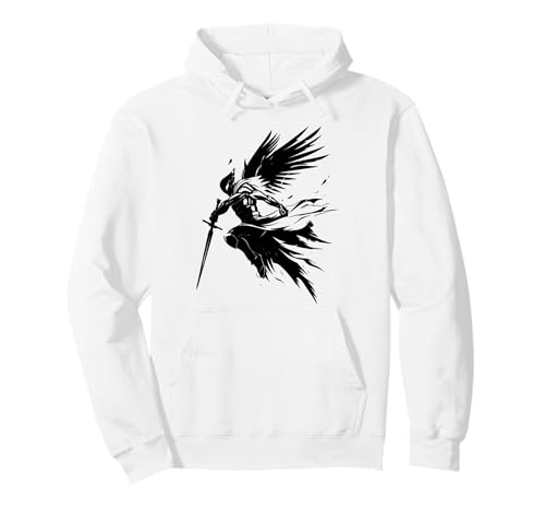 Dark Angel Warrior Sword Wings Shadow Paladin Gothic Fantasy Pullover Hoodie