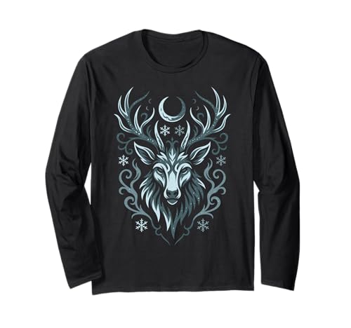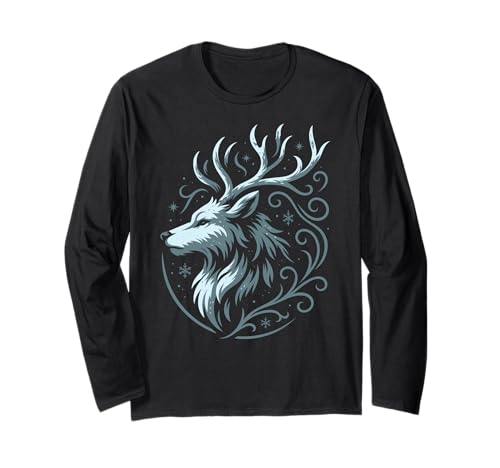 Shadow Creature Wolf and Stag Form Night Mystic Symbol Long Sleeve T-Shirt