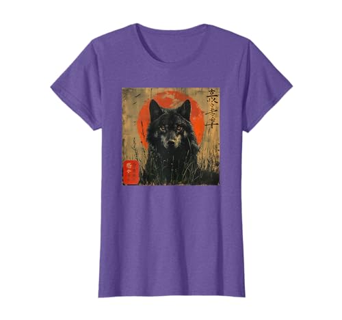 Wolf and Red Sun Japanese Style Dark Forest Art T-Shirt