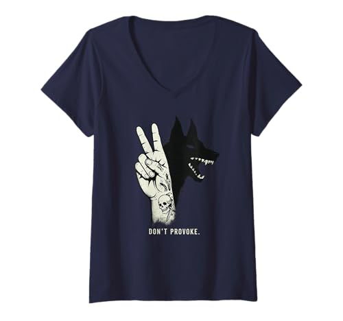 Women's Wolf Shadow Hand Tattoo Graphic – Dark Streetwear Animal V-Neck T-Shirt