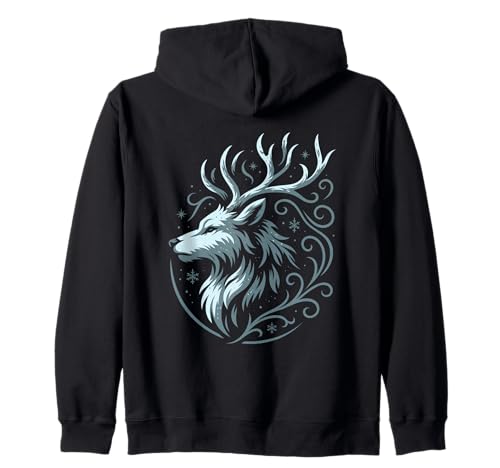Shadow Creature Wolf and Stag Form Night Mystic Symbol Zip Hoodie