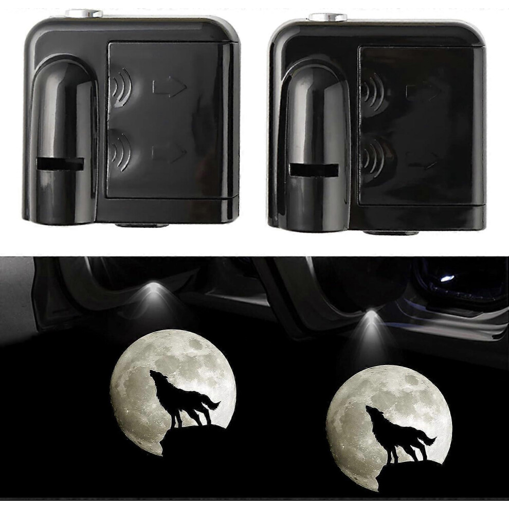 (As show, One size) Car Door Lights Logo Projector, Wireless Welcome Courtesy Door LED Light, Car Interior Infrared Sensor Ghost Shadow Lamp (Wolf Moo