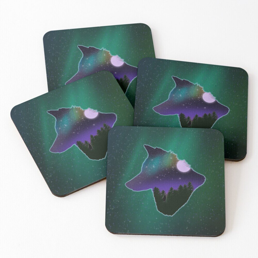 Leather Coasters Shadow Of The Wolf Set of 4 / 4 x 4 inch
