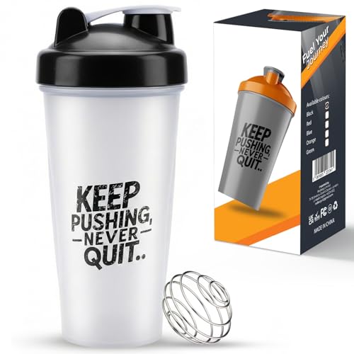 400ml Protein Shaker Bottle, Protein Shake Mixer, Shaker Cups Portable Pre Workout with Wire Mixball Blender Perfect for Mixing Powdered Shakes, Clear, BPA Free and DEHP-free, Dishwasher Safe (White)