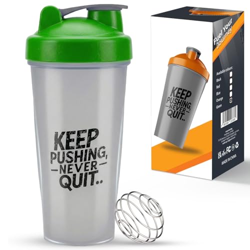400ml Protein Shaker Bottle, Protein Shake Mixer, Shaker Cups Portable Pre Workout with Wire Mixball Blender Perfect for Mixing Powdered Shakes, Clear, BPA Free and DEHP-free, Dishwasher Safe (Green)