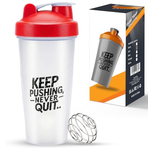 Alaoo Protein Shaker Bottle, 2PCS Shaker Protein Shakes with Metal Stirring Ball, Sports Gym Supplement Protein Shake Bottle for Mixing Protein Shakes and Supplements, 700ml, Black and Red