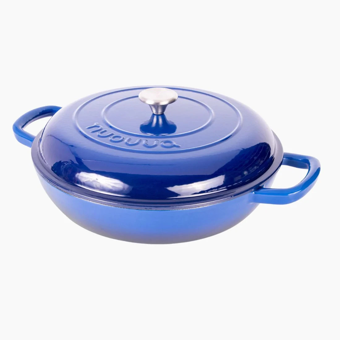 3.9L Shallow Cast Iron Dutch Oven with Lid | 29cm Oven-Safe Casserole Dish