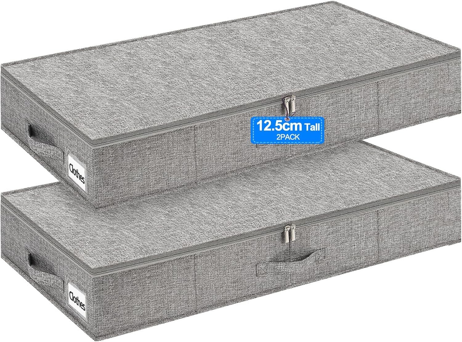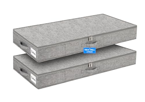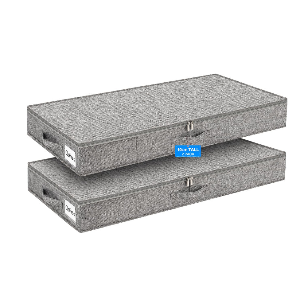 Huquter 40L 12 cm Tall Shallow Under Bed & Sofa Storage Boxes with Zipped Lids, Slim Underbed Organisers w/Sturdy Sides and Base, Thin Fabric Storage for Clothes, Duvets and Bedding, 2 Pack, Grey