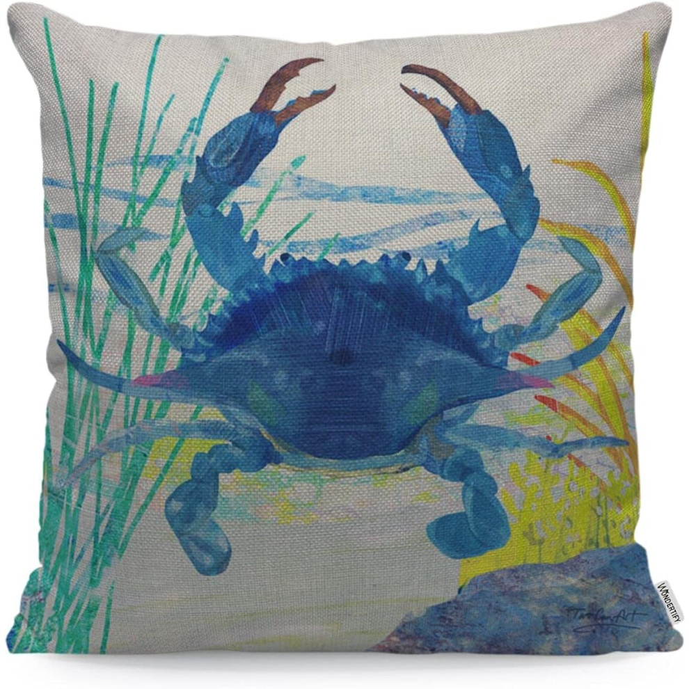 Blue Crab Cushion Cover Shallow Coastal Aquatic Plants Decorative Throw Pillow Covers, Sofa Pillow Case 45X45 Cm