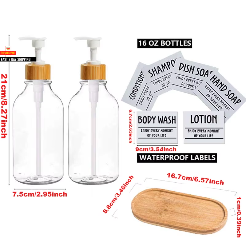2Pcs Refillable Shampoo and Conditioner Bottles with Tray,Dish and Hand Soap Dis