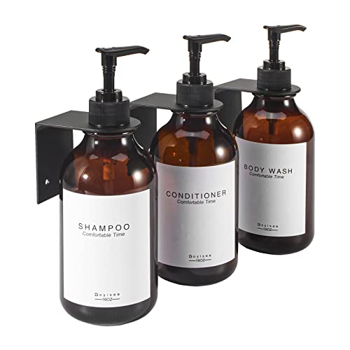 GOYISEE Shampoo and Conditioner Dispenser for Shower Wall 3 Chamber,Refillable Shampoo and Conditioner Bottles with Waterproof Labels,Soap Dispenser with Pumps (3 Bottles 3 Wall Mounts-Brown)