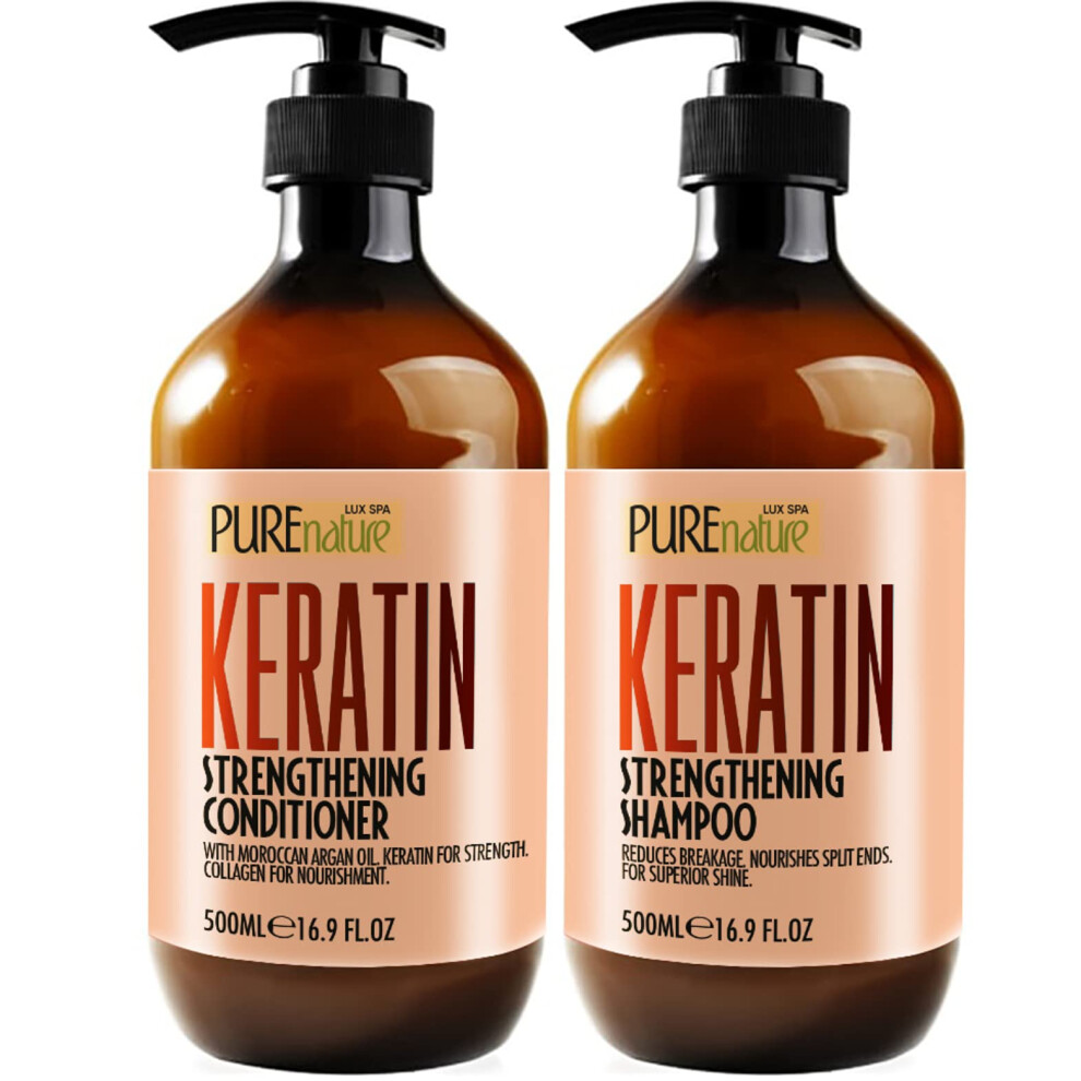 Keratin Shampoo and Conditioner Set - Sulfate Free Moisturizing Treatment for Men and Women - Hair Thickening Product for Volume and Shine - With Mor