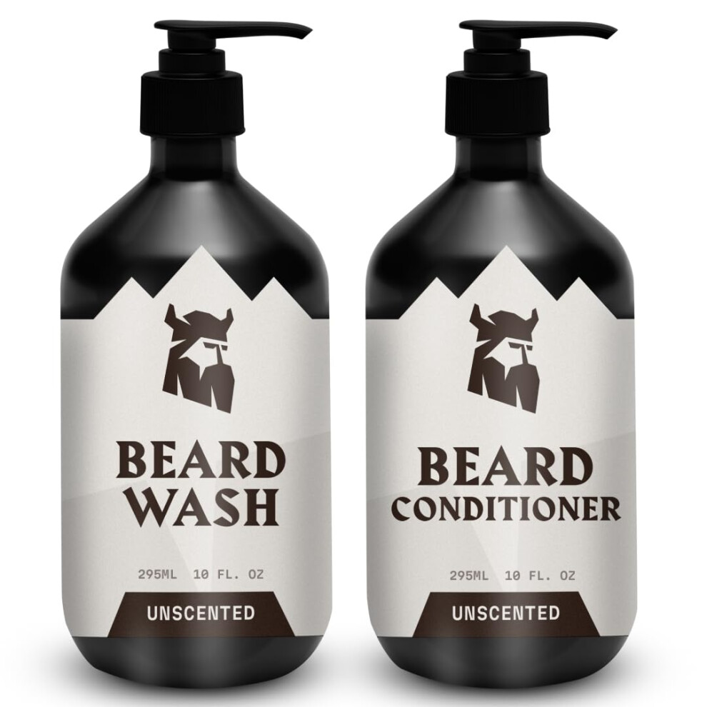 Striking Viking Beard Wash and Conditioner Unscented - 10 Fl Oz (Pack of 2) Beard Shampoo and Conditioner Paraben & Sulfate Free for Men - Deep Cleans