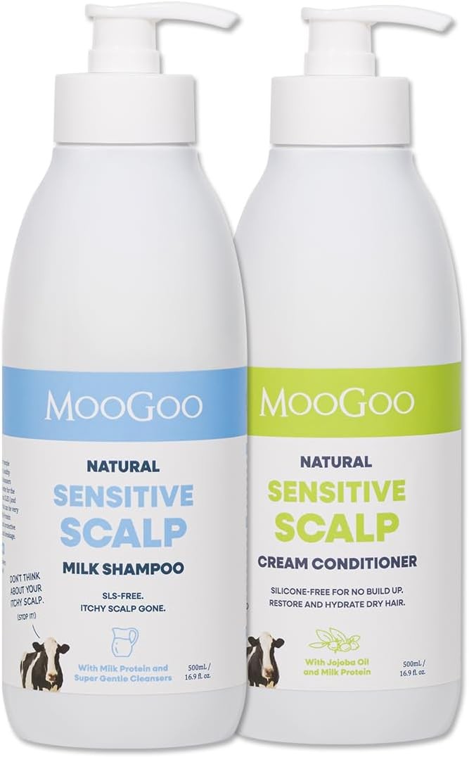 MooGoo Natural Milk Shampoo & Cream Conditioner Pack - For Itchy, Dry, Sensitive Scalps Prone to Eczema & Psoriasis – Sulphate-Free, Silicone-Free, Paraben-Free - 2x 16.9 fl oz