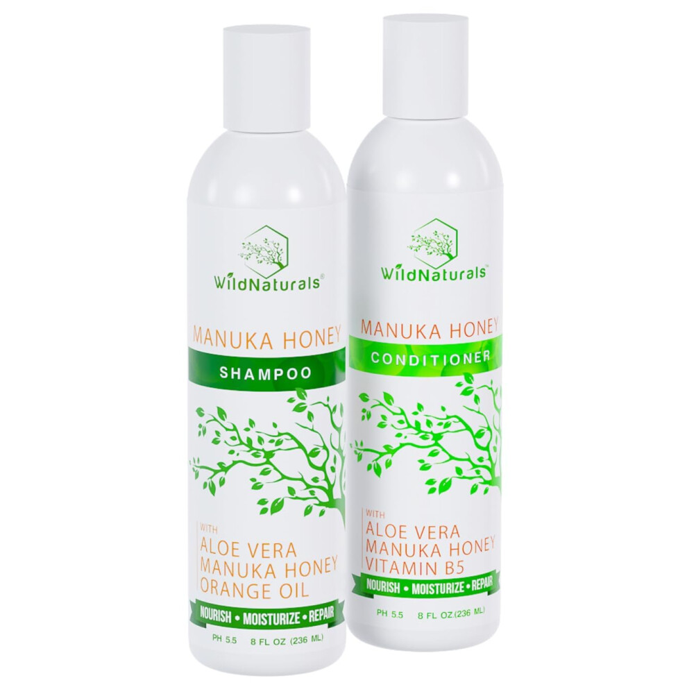 Manuka Honey Shampoo and Conditioner - Soothing Moisturizing Formula for Eczema Psoriasis Curly Hair and Color-Safe - All Natural Set