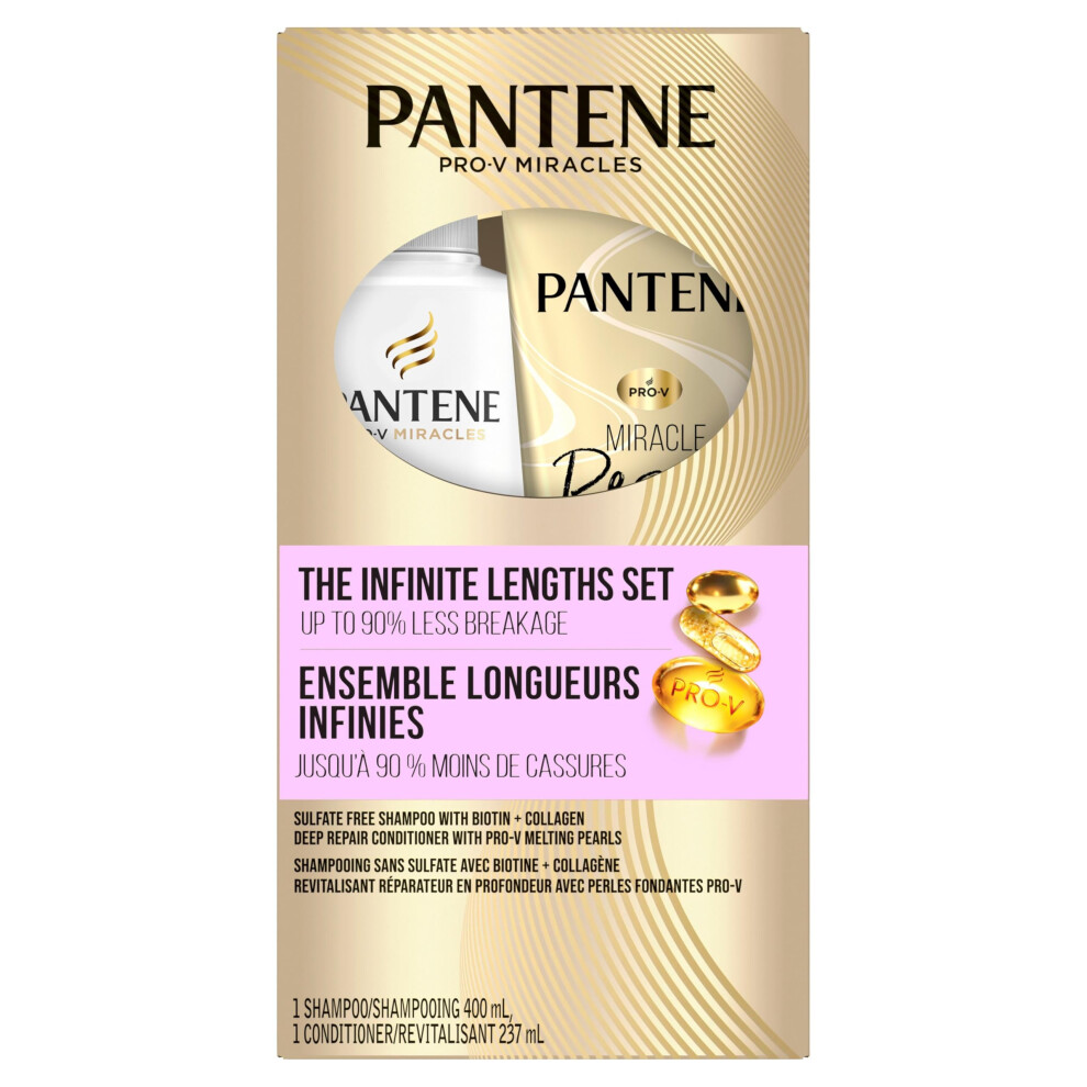 Pantene Sulfate-Free Pro-V Miracles Infinite Lengths Biotin + Collagen Shampoo, 400 mL and Miracle Rescue Deep Repair Conditioner, 237 mL