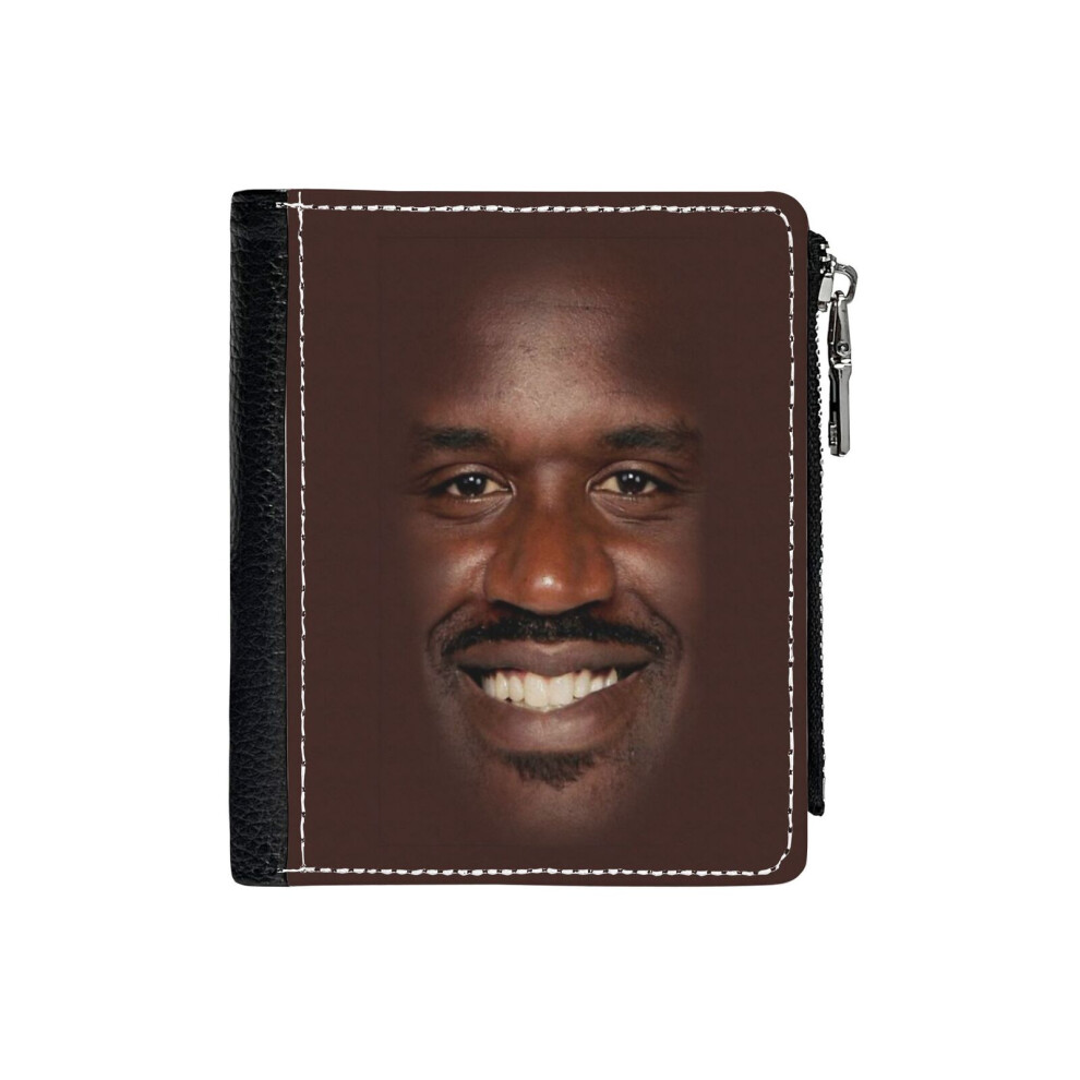(Shaq Fu_6011) Men's Women PU Leather Wallets Compact Bifold with Zipper & Multiple Card Coins Slots Black Stylish Durable Graphic Design Print for Gi