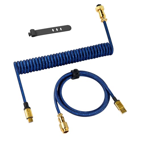 ATTACK SHARK C03 Coiled USB C Cable for Gaming Keyboard, Type-C to USB-A, PRO Custom Braided Double-sleeved Mechanical Keyboard Charger Cable with Gold-plate Detachable Aviator Connector, Deep Blue