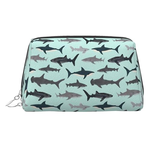 Shark Printed Beauty Pouch, Large Makeup Holder with Built-in Sponge Protection for Home and Trip