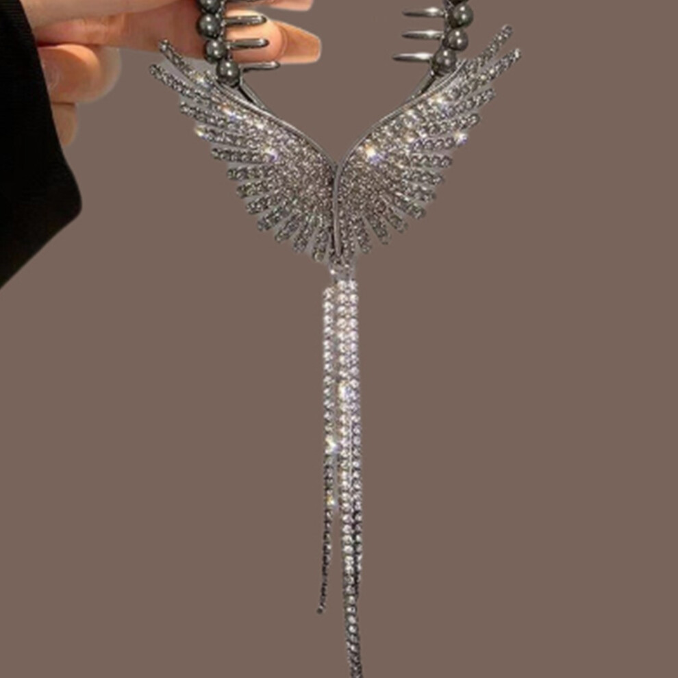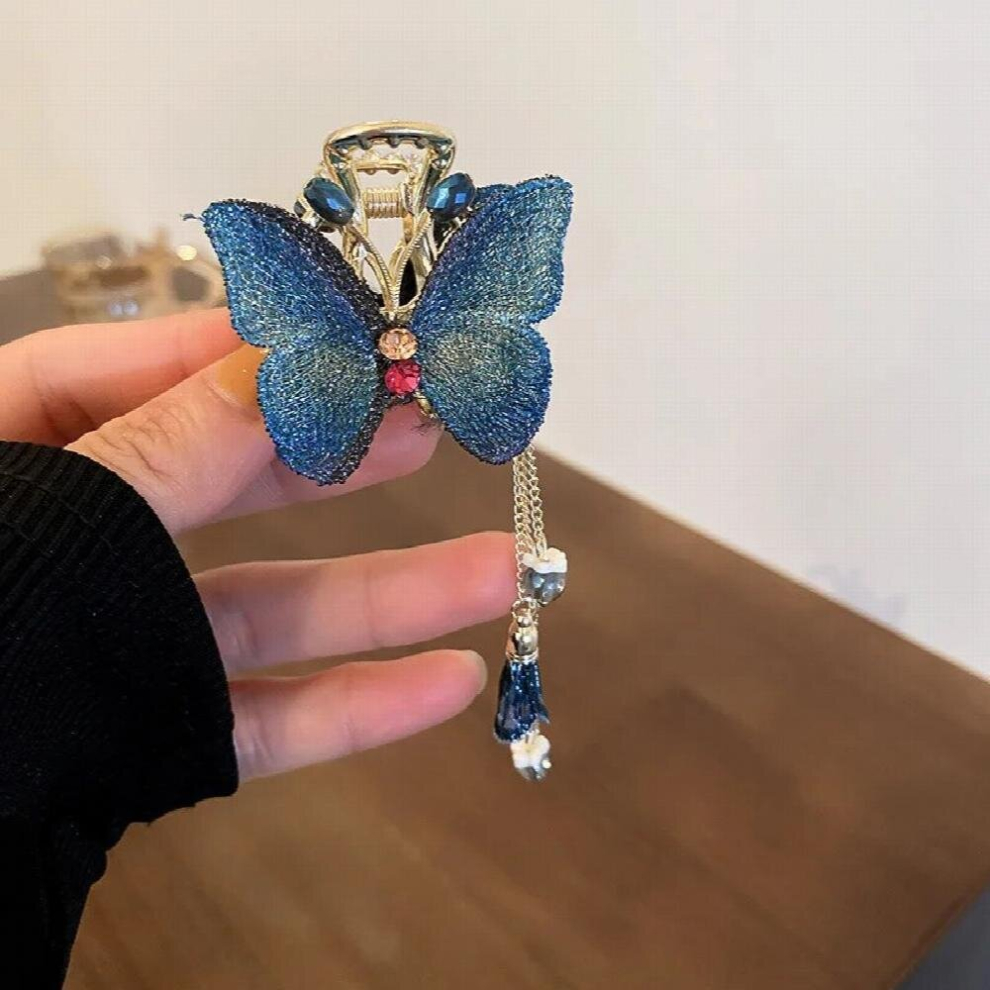 Crystal Tassel Hair Claw Butterfly Vintage Jewelry For Women Ladies Large Shark Clip Beauty Gift