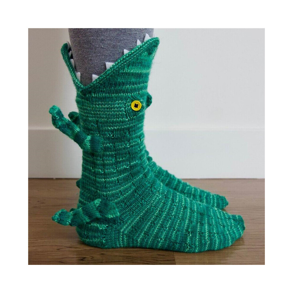 (Crocodile) Cute Animal Knit Socks - Crocodile, Shark, Chameleon