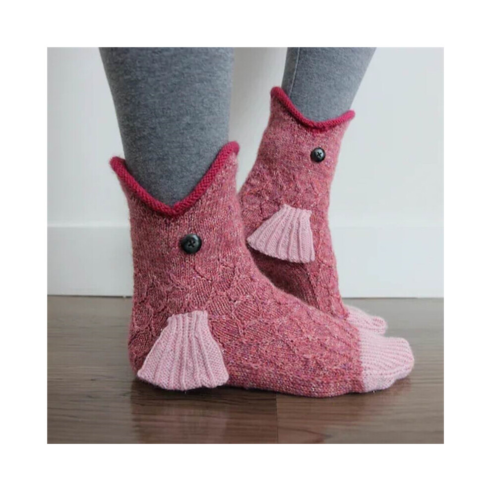 (fish) Cute Animal Knit Socks - Crocodile, Shark, Chameleon