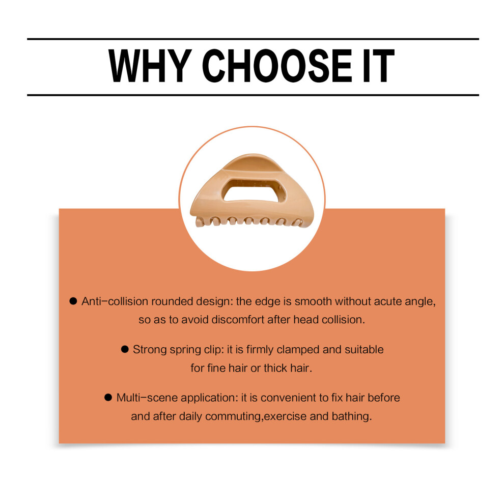 (Naked Feel Brown Triangle) Strong Grip Silicone Shark Hair Clip for Women