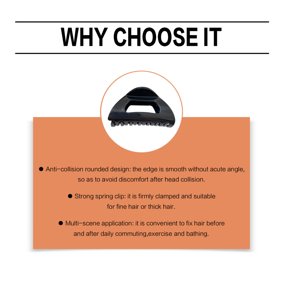 (Naked Feel Black Triangle) Strong Grip Silicone Shark Hair Clip for Women