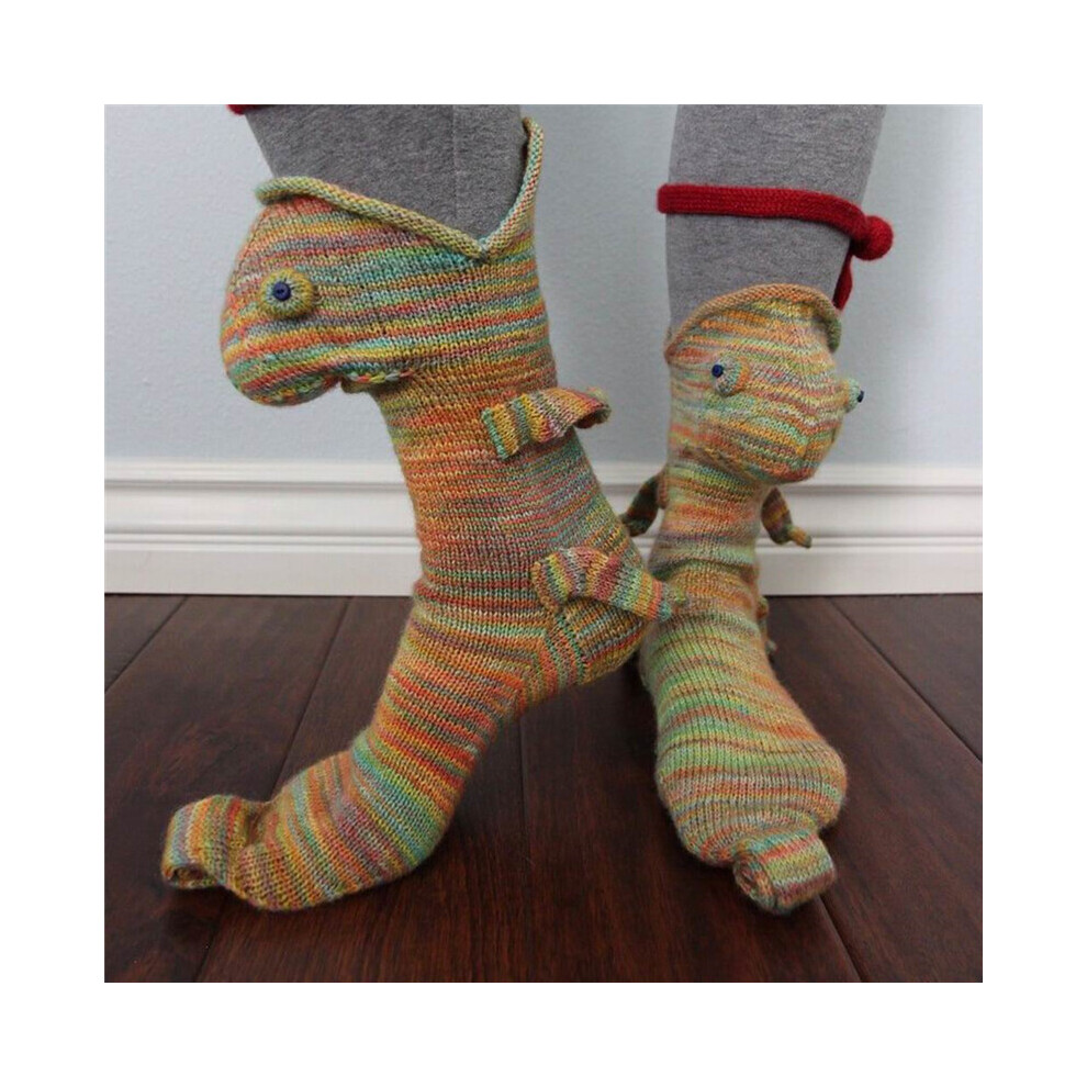 (Chameleon) Cute Animal Knit Socks - Crocodile, Shark, Chameleon